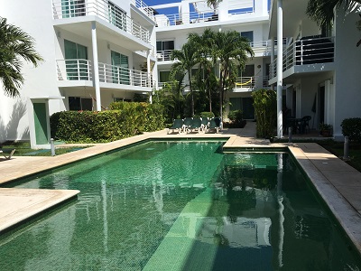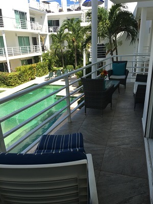 There are two large balconies, one off the master bedroom , and one off the guest bedroom extending to in front of the living area and overlooking the inner courtyard and turquoise swimming pool, which will keep you refreshed on a hot day in sunny Playa del Carmen.
